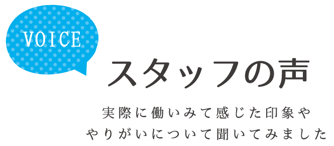 当院で勤務しているスタッフに、実際に働いてみた感想や、やりがいについてアンケート形式で聞いてみました。